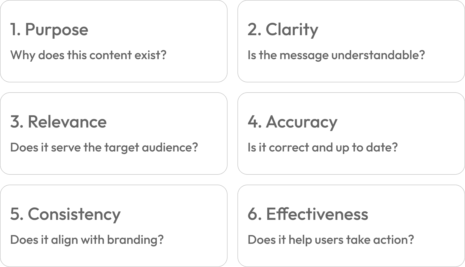 I performed a comprehensive content audit, evaluating each page across six key criteria to measure engagement effectiveness. This identified content that failed to serve the audience or guide users toward a clear action, allowing me to prioritize and restructure the site for maximum impact.