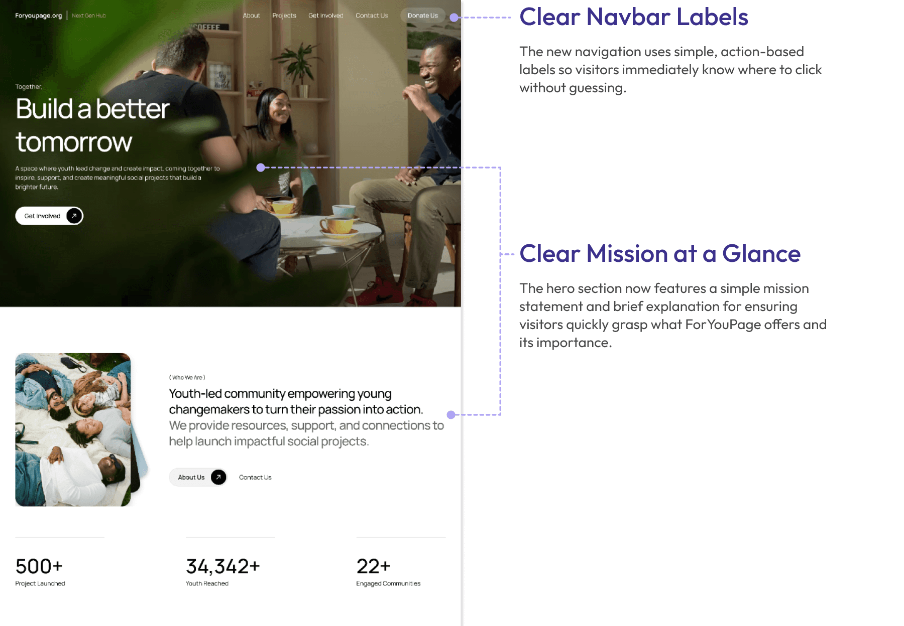 ✅ Clear Navbar Labels: The new navigation uses simple, action-based labels so visitors immediately know where to click without guessing.